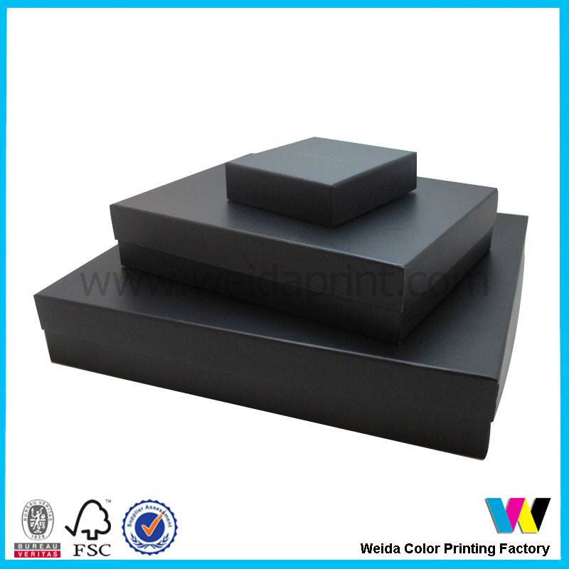 Diverses boîtes d'emballage de papier de Matt de noir de taille pour l'emballage de cadeau