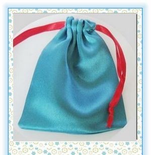 Poches bleues de cadeau de cordon de satin avec le ruban rouge pour l'emballage de bijoux